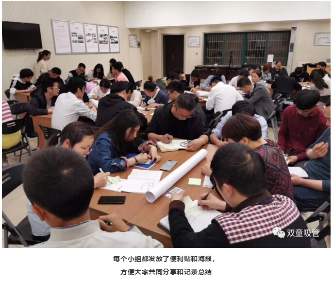與此同時,我們給每個小組都分發(fā)了便利貼和海報,讓每個小組成員將自己的觀點提煉記錄下來,方便大家共同分享和記錄總結(jié)。