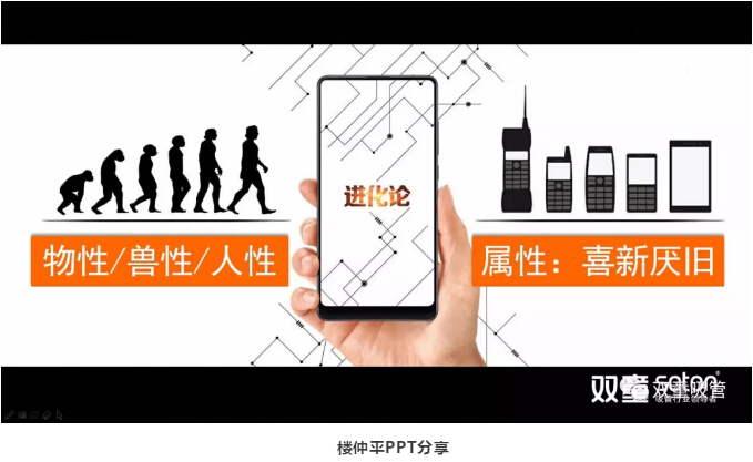 樓仲平又用達爾文的《物種起源》作為案例,呈現(xiàn)了創(chuàng)新問題的底層原理:人類從物性、獸性到人性的層層進化過程當中,形成了喜新厭舊的應變反饋,這是一種自然規(guī)律。而作為組織,在高度變化的環(huán)境下,想要得以續(xù)存就必須要對這種自然規(guī)律進行干預。也就是說創(chuàng)新需要我們?nèi)?chuàng)造新的東西,來不斷滿足人們喜新厭舊的這種自然屬性。