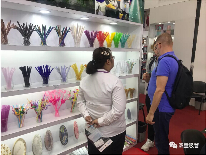 瞧!“雙童”展區(qū)展示著各式各樣的可食用淀粉吸管,它們成為了此次展會(huì)的焦點(diǎn),大批新老客商駐足詢價(jià),現(xiàn)場(chǎng)真是擠爆啦!