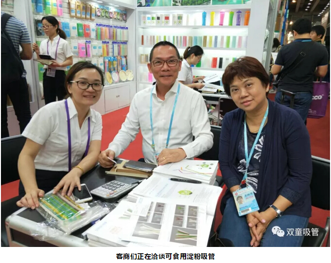 “雙童”可食用淀粉吸管首次上市就在廣交會(huì)上引爆啦,許多客商都慕名而來了解這根“神奇的吸管”!