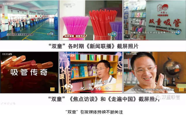 通過企業(yè)創(chuàng)造差異化亮點,“雙童”獲得了砸廣告都不能獲得的關(guān)注度和流量,成為了吸管行業(yè)的“金牌子”,也讓大家改變了對吸管這類產(chǎn)品“低、小、散、弱”的傳統(tǒng)定義。通過各大媒體對“雙童”的報道和宣傳,“雙童”品牌不花一分錢,就傳遍了大江南北。