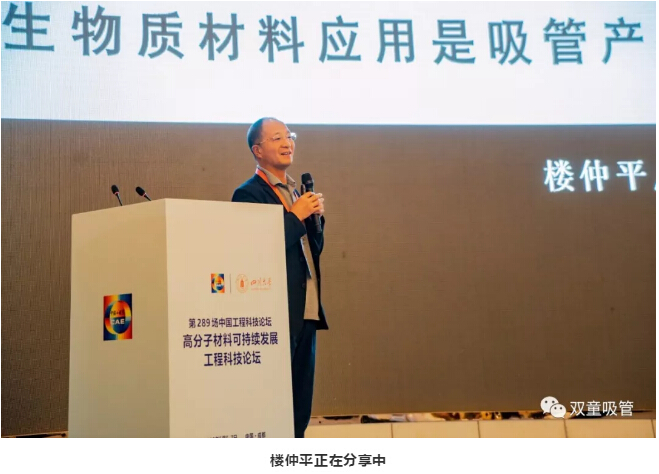 在這樣“談笑有鴻儒,往來無白丁”的重要場合,所有院士的分享都采用了英文課件,信息量超大。作為受邀分享嘉賓之一,“雙童”樓仲平也從吸管產(chǎn)業(yè)角度出發(fā)分析在禁塑大趨勢下吸管行業(yè)的發(fā)展方向,為大家?guī)砹?/span>《生物降解材料應(yīng)用是吸管產(chǎn)業(yè)的未來發(fā)展趨勢》主題分享!