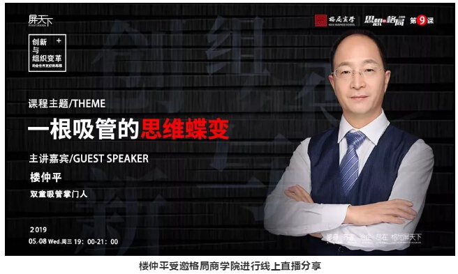 5月8日,“雙童”樓仲平受邀在格局商學(xué)最核心的板塊《思想的格局2019》,以全新的線上課程直播的形式分享《一根吸管的思維蝶變》,引導(dǎo)大家突破表象認(rèn)知,理解底層邏輯,用互聯(lián)網(wǎng)的思維去理解產(chǎn)品,并在線與萬(wàn)名學(xué)員進(jìn)行即時(shí)互動(dòng)與反饋!
