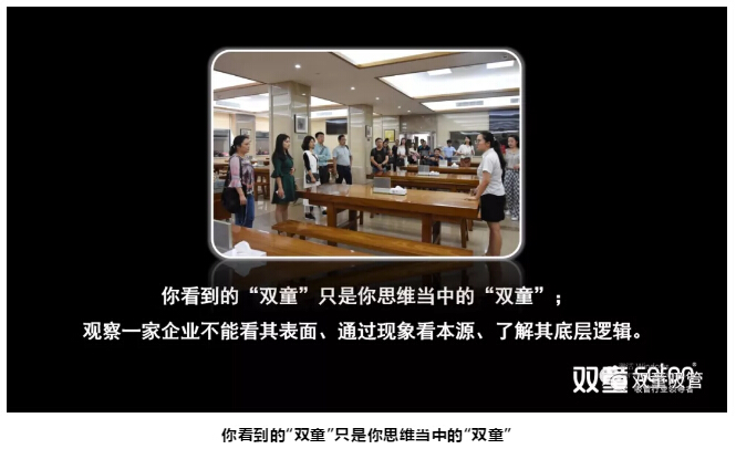樓仲平以“雙童”為例:很多人來“雙童”參觀都覺得“雙童”的硬件很好,但是我做的第一件事就是“破界”,你看到的“雙童”只是你思維當(dāng)中的“雙童”,要了解‘雙童’為什么會這么做,企業(yè)這樣做的底層邏輯在哪里,一味照搬仿制是沒有意義的!