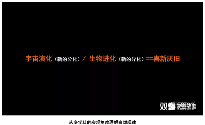 認(rèn)知創(chuàng)新,需要創(chuàng)業(yè)者打開眼界,多去學(xué)習(xí)那些看似“無用”的知識,運用天文學(xué)、生物學(xué)、物理學(xué)的宏觀角度,理解在“自然規(guī)律”的演繹和進(jìn)化。