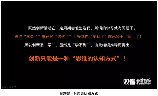 所以創(chuàng)新是不斷迭代的,靠“學(xué)”,顯然是“學(xué)不到”,創(chuàng)新只能是一種“思維認(rèn)知方式”。