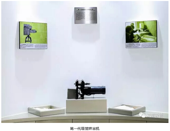 在吸管生產(chǎn)技術(shù)體驗(yàn)區(qū)展示著第一代吸管擠出機(jī)。