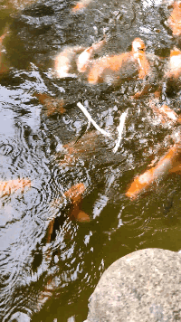 因此,把可食用淀粉吸管丟進魚池2小時后,軟化后就變成魚兒的美食啦!快看,魚兒都爭著搶著吃吸管呢!