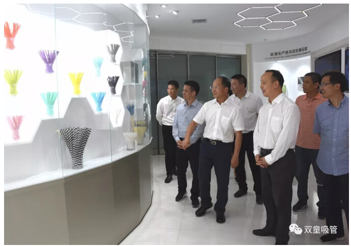 緊接著,“雙童”樓仲平帶領(lǐng)馬林云廳長一行來到中國吸管博物館。