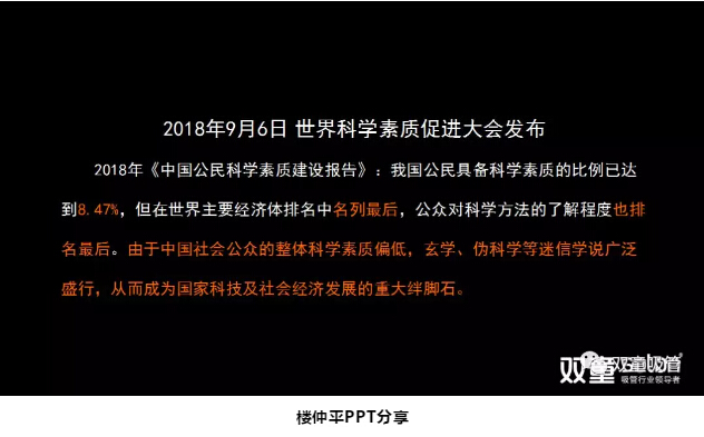 隨后,課程進(jìn)入到第二個(gè)主題的分享。樓仲平引導(dǎo)大家認(rèn)知:“創(chuàng)新”是一種科學(xué)的方法論,并引用了2018年《中國(guó)公民科學(xué)素質(zhì)建設(shè)報(bào)告》中的一段話: