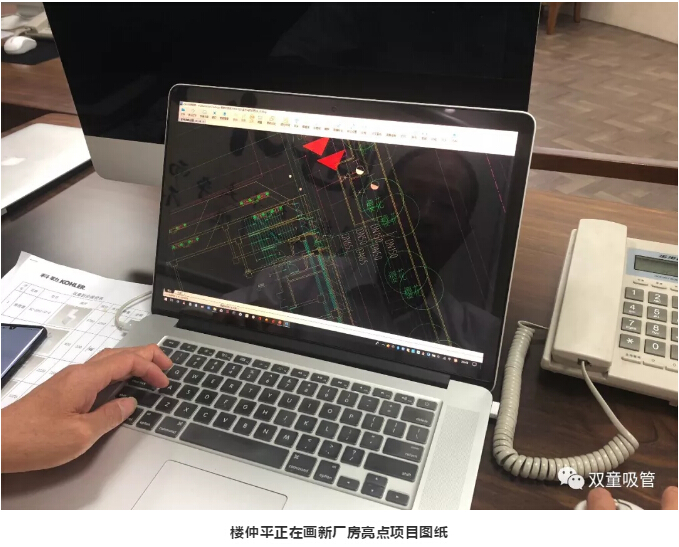 樓仲平正在設(shè)計(jì)新廠房中水、消防管線等圖紙