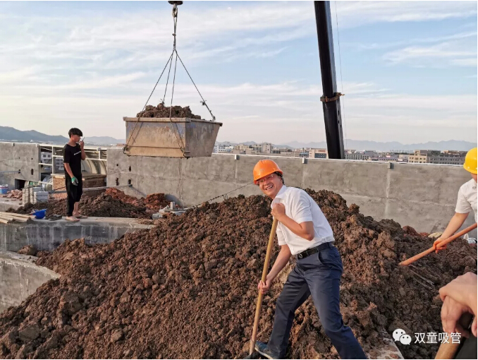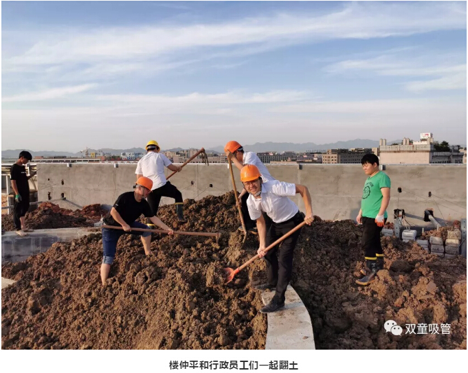 課程直播結(jié)束后,樓仲平再次來到新廠房工地進(jìn)行巡查。在看到新廠房屋頂花園的土方堆的太高,容易產(chǎn)生安全隱患時(shí),樓仲平馬上召集了部分行政人員應(yīng)急,大家一起拿起鏟子開始鏟土,及時(shí)解決土方過高問題??磥?,樓大大真是快變成包工頭啦!