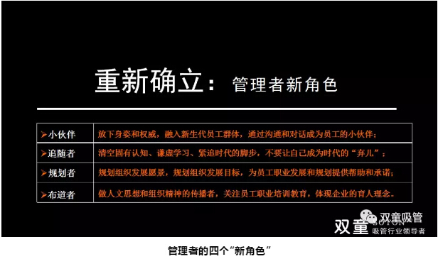 哈嘍,大家好!今天吸管妞給大家?guī)?/span>“雙童”人才觀系列文章的第一篇:《管理者的四個新角色》!首先,吸管妞先和大家分享一張圖片:
