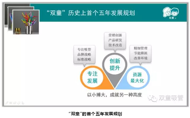 以“雙童”為例,從2005年開始,“雙童”管理團隊便每五年規(guī)劃公布一個企業(yè)的五年發(fā)展規(guī)劃,并緊緊圍繞這些規(guī)劃開展企業(yè)的具體事務和發(fā)展方向。
