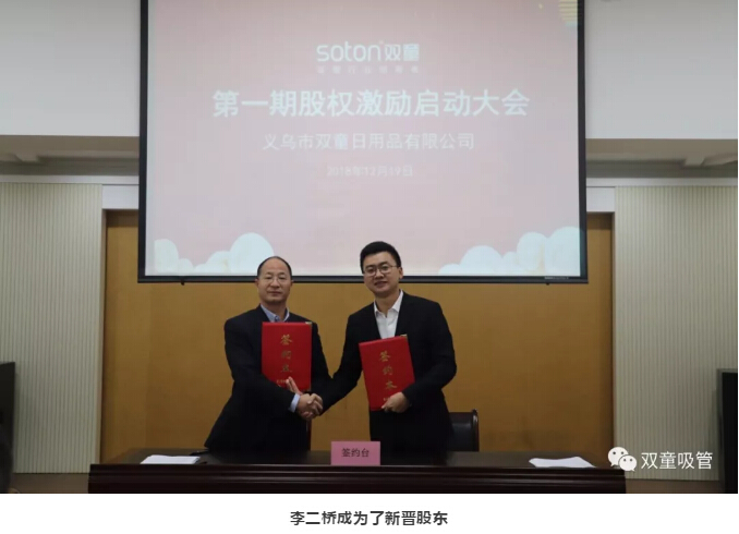 而在2018年12月19日,在“雙童”第一期股權(quán)激勵(lì)啟動(dòng)大會(huì)上,“雙童”首批12位核心員工正式簽約成為“雙童”的經(jīng)營(yíng)伙伴,我們以股份合伙、業(yè)務(wù)合伙等“合伙激勵(lì)”的 方式讓優(yōu)秀人才變?yōu)楹匣锶?,讓員工和組織的目標(biāo)長(zhǎng)遠(yuǎn)契合、共同生長(zhǎng)、共享價(jià)值創(chuàng)造的有效延伸!