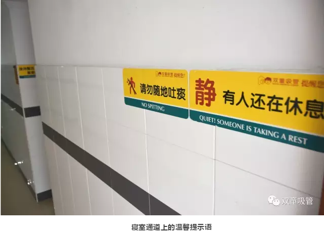 走進(jìn)“雙童”廠區(qū),第一印象是環(huán)境很整潔、衛(wèi)生。在員工宿舍區(qū),裝修了十多年的白墻有些泛黃,卻找不出一個(gè)手印或鞋印。這是為什么?樓道口的一塊標(biāo)語(yǔ)牌似乎道出了答案:環(huán)境好,是因?yàn)橛心?/span>