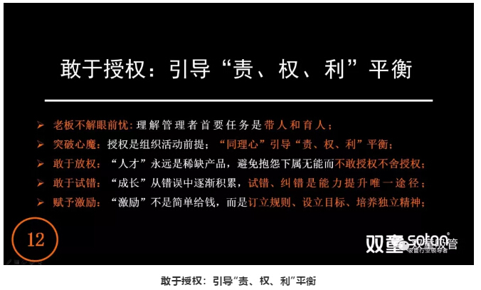 其實,樓仲平之所以講這段話是因為,企業(yè)是一個運行當中的商業(yè)團體,它的本質(zhì)是建立在“責、權(quán)、利”平衡上的。