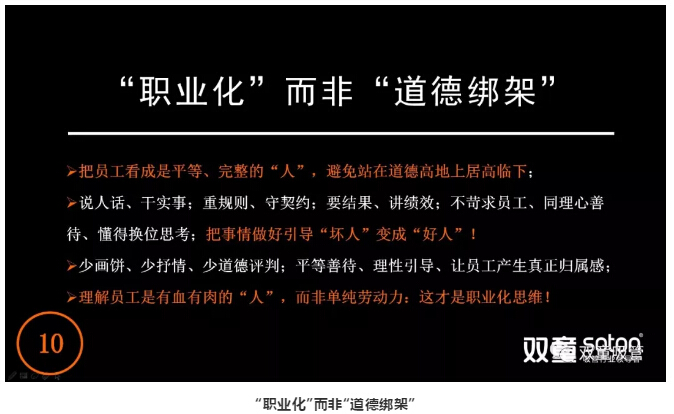 但在“雙童”,所謂“忠誠”并不是要求員工單方面向企業(yè)效忠,而是企業(yè)和員工之間相互忠誠,相互理解。