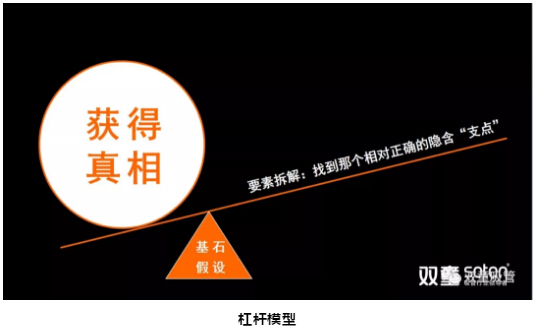 它背后的邏輯其實很簡單,即通過不斷地要素拆解,找到相對正確的“基石假設(shè)”,把它作為一個支點,從而撬動了思維。