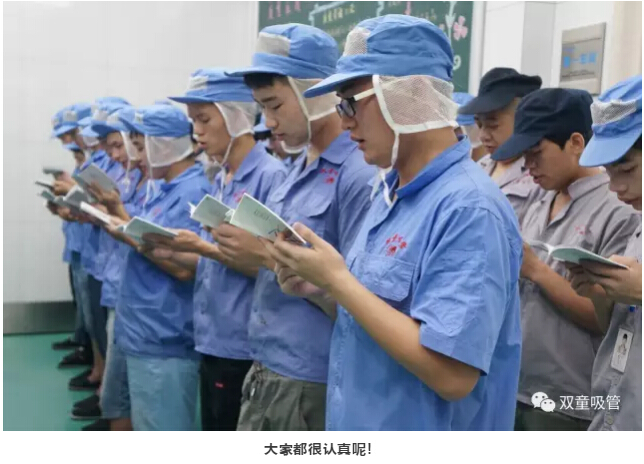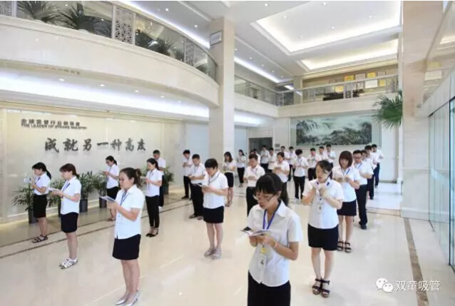 首先,就是晨讀環(huán)節(jié)。“雙童”所有員工在上班之前都會(huì)在統(tǒng)一時(shí)間誦讀“雙童”的企業(yè)文化叢書——《每日一則》。
