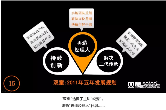 通過“雙童”的“蛻變”過程,通過“再造經(jīng)理人”計劃,優(yōu)化了團(tuán)隊(duì)結(jié)構(gòu),激發(fā)了團(tuán)隊(duì)活力和創(chuàng)新意識。同時,也引領(lǐng)企業(yè)走向下一個全新的發(fā)展征程。