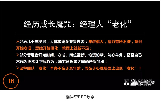 在公司創(chuàng)辦初期聘用的一批管理層,在2010年前后,大部分管理人員逐漸出現(xiàn):依托于慣性思維,憑經(jīng)驗(yàn)用老方法解決新問題,不愿意學(xué)習(xí)等問題,團(tuán)隊(duì)的成長也因此遇到了瓶頸。
