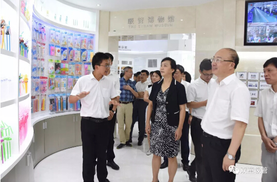 “雙童”總經(jīng)理李二橋陪同王文序副省長一行來到中國吸管博物館。大家一起參觀了產(chǎn)品發(fā)展歷史展示區(qū)、吸管生產(chǎn)技術(shù)展示區(qū)、吸管產(chǎn)品形態(tài)展示區(qū)等各類吸管的展示區(qū)域,了解了吸管的發(fā)展與變遷。