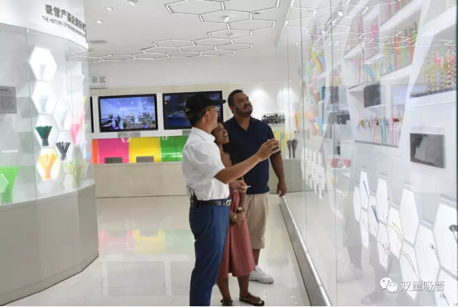 接著,南非友人被“雙童”可降解吸管吸引住了,在聽(tīng)了樓仲平對(duì)“雙童”P(pán)LA生物質(zhì)可降解吸管、“雙童”紙質(zhì)吸管等一番介紹后,他們覺(jué)得十分不可思議,一根吸管不僅可以玩出這么多花樣,還可以做得如此環(huán)保!