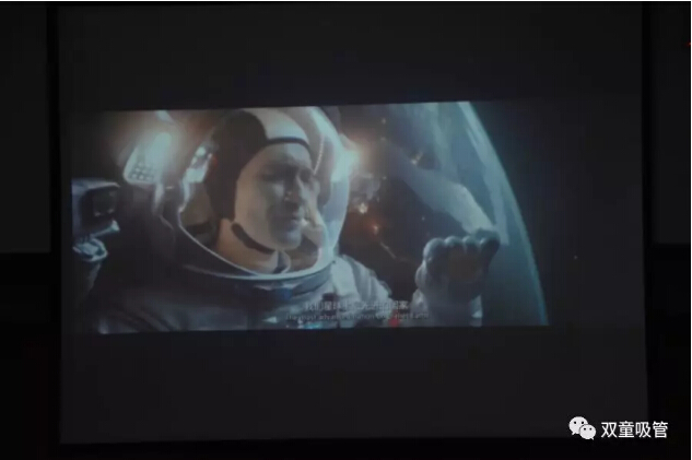 在現(xiàn)場,吸管妞為壽星及影迷們放映了由黃渤與沈騰主演的電影《瘋狂外星人》。瞧!“雙童”人都把“雙童影院”給承包啦!