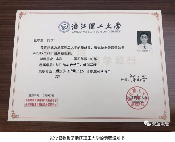 “雙童”寶貝張守君考上了省重點大學(xué)