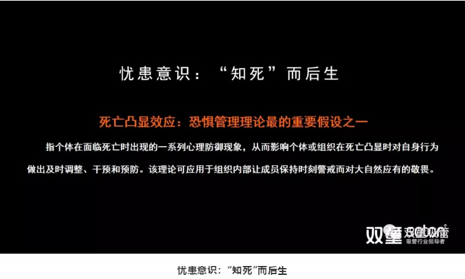 所以,把這樣的理論應(yīng)用到組織或企業(yè)當(dāng)中,也讓組織凸顯出對“死”的認(rèn)識,唯有意識到要“死”了,企業(yè)才能獲得“活著”的可能,從而提高組織的憂患意識,讓成員保持時刻警戒,保持壓力,加速流動,不斷迭代,從而提高組織的產(chǎn)出效率!