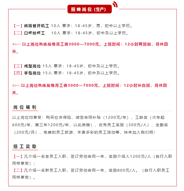 “雙童”二期智能化工廠即將投產!由于擴大生產、新上項目等原因,“雙童”新一波招聘開始啦!