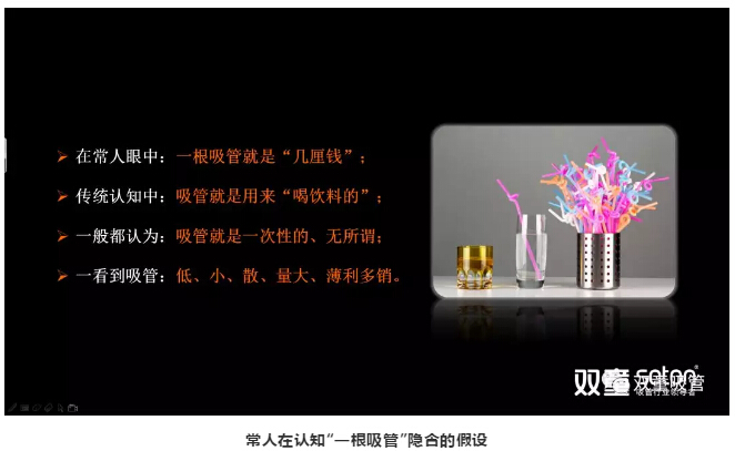 首先,樓仲平以“一根吸管”為載體,引導(dǎo)大家思考“產(chǎn)品 Vs 商品”的隱含假設(shè):