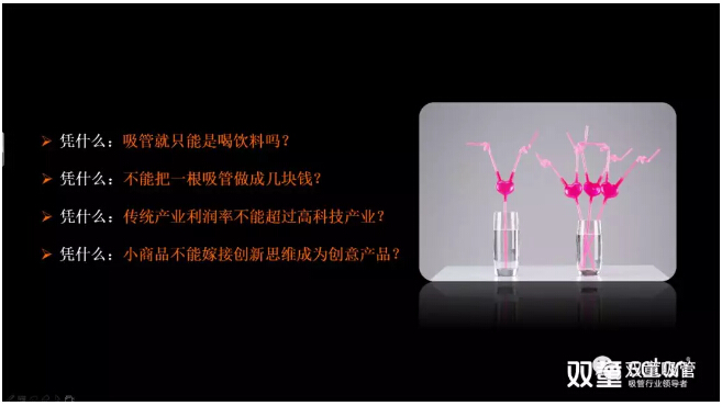 比如:“雙童”在2003年,第一次打破了吸管的“隱含假設(shè)”:一根吸管只能拿來喝飲料嗎?就不能做出情感交流工具嗎?為什么不能把一根吸管做成幾塊錢……