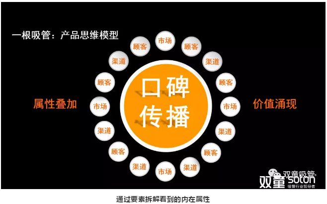 在這個(gè)過程當(dāng)中,“雙童”實(shí)現(xiàn)了從“產(chǎn)品思維”向“商品思維”的轉(zhuǎn)變。“一根吸管”通過要素分解、擇優(yōu)選擇、重新組合,從而在產(chǎn)品之外疊加了更多的屬性,轉(zhuǎn)變?yōu)樯唐贰?nbsp;