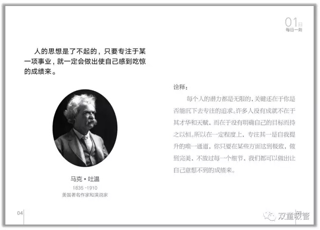 人的思想是了不起的,只要專注于某一項(xiàng)事業(yè),就一定會(huì)做出使自己感到吃驚的成績來。——馬克吐溫