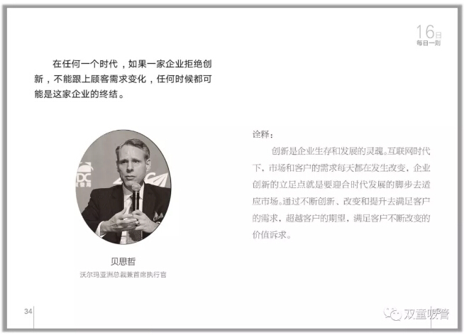 在任何一個(gè)時(shí)代,如果一家企業(yè)拒絕創(chuàng)新,不能跟上顧客需求變化,任何時(shí)候都可能是這家企業(yè)的終結(jié)。 ——貝思哲