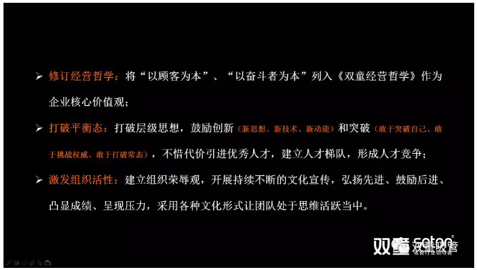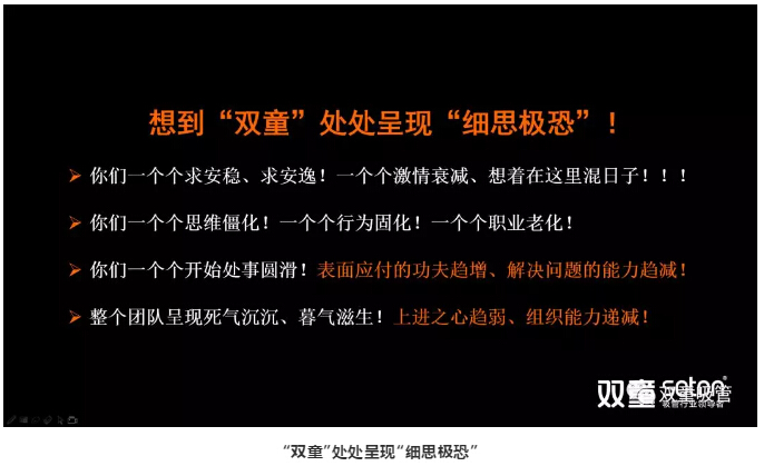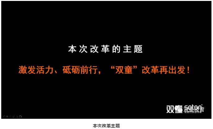 變革伊始,“雙童”也通過(guò)連續(xù)幾天時(shí)間對(duì)全體員工進(jìn)行詳細(xì)的講解和大張旗鼓的宣導(dǎo):