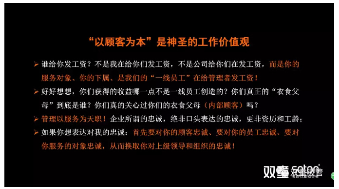 第二問(wèn)題:對(duì)于管理者來(lái)講“以顧客為本”的顧客是一線員工。