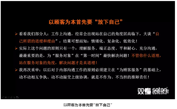 所以,管理者們不要把自己當(dāng)成高高在上的領(lǐng)導(dǎo),而是把自己當(dāng)成一線員工的服務(wù)者,管理者唯有建立“為下屬服務(wù)、為對(duì)象服務(wù)、引導(dǎo)團(tuán)隊(duì)共同成長(zhǎng)”的意識(shí)才能真正實(shí)現(xiàn)為顧客服務(wù)。以顧客為本首先要“放下自己,為“服務(wù)對(duì)象”在“第一時(shí)間”最快為員工解決問(wèn)題!