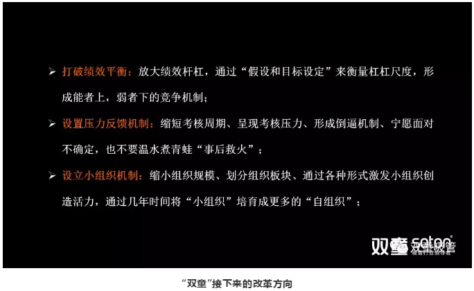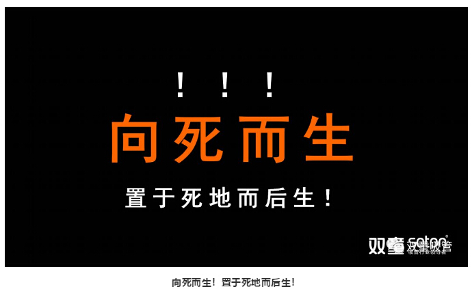 在這次變革中,“雙童”第一次破天荒提出了以“死亡”為假設(shè)命題,引進(jìn)“向死而生,置于死地而后生”的概念讓團(tuán)隊(duì)意識(shí)到自己所面對(duì)的危機(jī),從而讓員工和組織管理層認(rèn)知到死亡即將到來(lái)之時(shí),激發(fā)團(tuán)隊(duì)產(chǎn)生強(qiáng)烈危機(jī)感,從而實(shí)現(xiàn)對(duì)組織管理的及早干預(yù),以此推動(dòng)企業(yè)獲得“生”的能力,獲得組織生命的延伸!