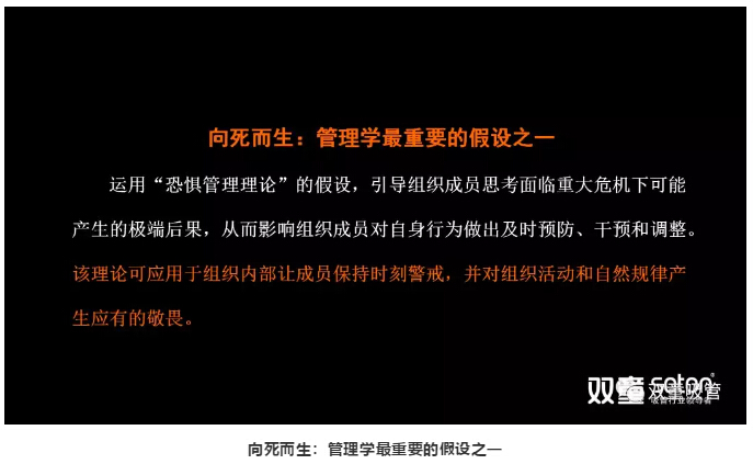 最后一個(gè)篇幅,樓仲平引用管理學(xué)“向死而生,置于死地而后生”的命題,引導(dǎo)直面死亡,從而激發(fā)自身干預(yù),以獲得企業(yè)持續(xù)生存和發(fā)展的機(jī)會(huì)!