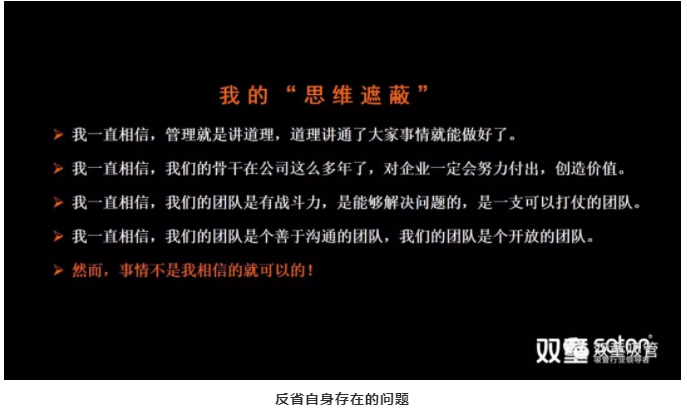 李二橋分享到,在今后的管理過(guò)程當(dāng)中,要向內(nèi)看,尋找自身的原因,反思自身的問(wèn)題。并要求所有管理層在OA系統(tǒng)當(dāng)中上傳自我反思報(bào)告,讓全體員工進(jìn)行監(jiān)督,從而促進(jìn)管理人員實(shí)現(xiàn)思想層面的提升和改變。