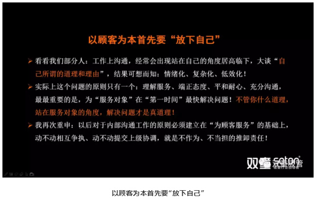 李二橋分享到,在座的各位首先要認(rèn)知到誰(shuí)是你的服務(wù)對(duì)象,在認(rèn)清服務(wù)對(duì)象之后,再遵循“以顧客為本”的核心價(jià)值觀,在第一時(shí)間為服務(wù)對(duì)象解決問(wèn)題。