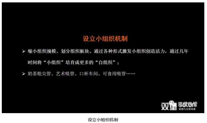 縮小組織規(guī)模、劃分組織板塊、通過(guò)各種形式激發(fā)小組織創(chuàng)造活力,通過(guò)幾年時(shí)間將“小組織”培育成更多的“自組織”。