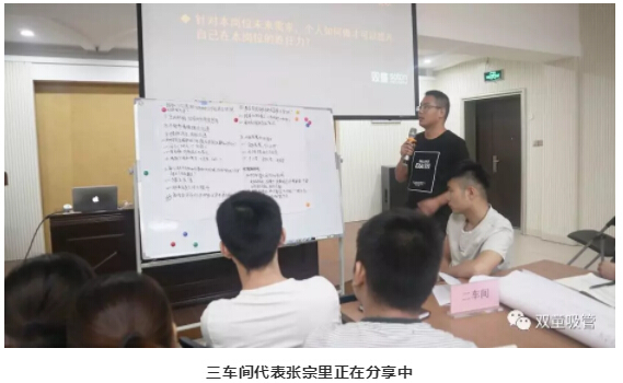 緊接著,針對(duì)如何落實(shí)車間競(jìng)賽,三車間也派代表分享了小組討論的改革方案:通過“團(tuán)隊(duì)比賽,個(gè)人計(jì)件”的形式,在這個(gè)過程中,對(duì)老員工、新員工進(jìn)行合理的搭配,并在后續(xù)根據(jù)所有員工自身產(chǎn)生的產(chǎn)量,設(shè)立“個(gè)人獎(jiǎng)”、“團(tuán)隊(duì)獎(jiǎng)”、“進(jìn)步獎(jiǎng)”,并給與獎(jiǎng)勵(lì),促使每位員工積極參與。