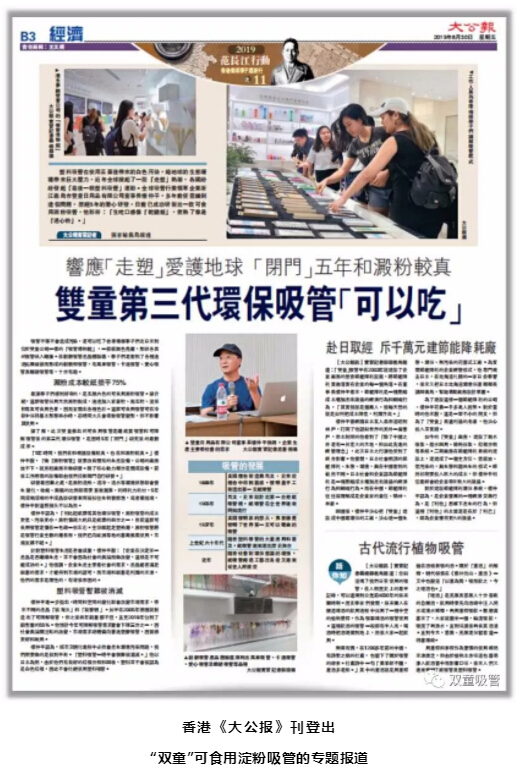 近日,香港《大公報(bào)》刊登出了《“雙童”第三代環(huán)保吸管“可以吃”》的專題報(bào)道,究竟小記者們?cè)凇半p童”發(fā)現(xiàn)了哪些精彩亮點(diǎn)呢?快跟著吸管妞一起來(lái)看看吧!