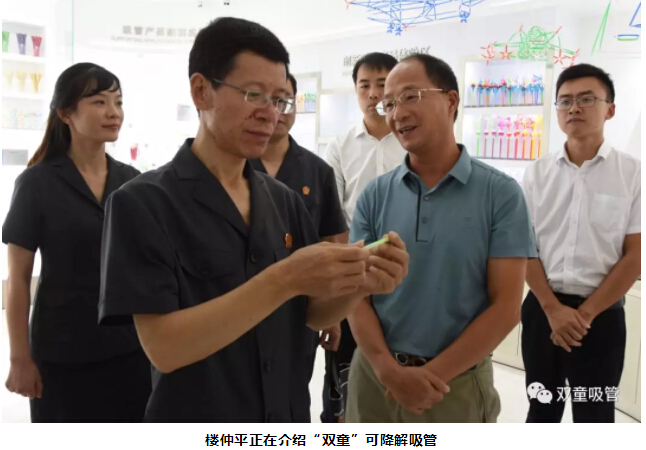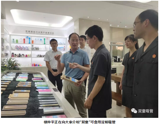 胡公益院長(zhǎng)聽(tīng)完介紹后,對(duì)這款綠色環(huán)保的可食用淀粉吸管稱(chēng)贊連連。