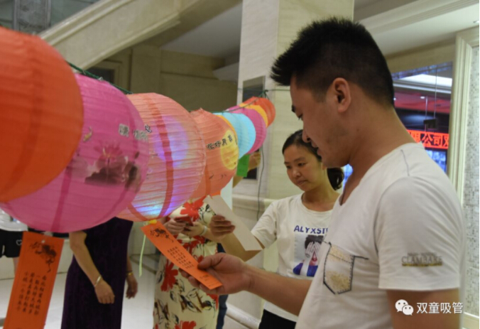 大家的聰明才智讓吸管妞佩服!沒過多久,大家就紛紛帶著燈籠下的燈謎,報自己猜的謎底前來兌獎。猜對的可以有一次參與抽獎機會。瞧!兌獎處也是十分的熱鬧呢!