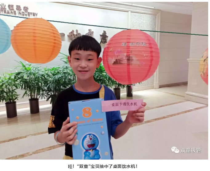 經(jīng)過校對謎底后,大家也紛紛的參與抽獎,有的人抽到了月餅,有的人抽到了桌面飲水機,有的人抽到了.......接下來,吸管妞給大家曬一波“雙童”人捧回大禮的美照呀!